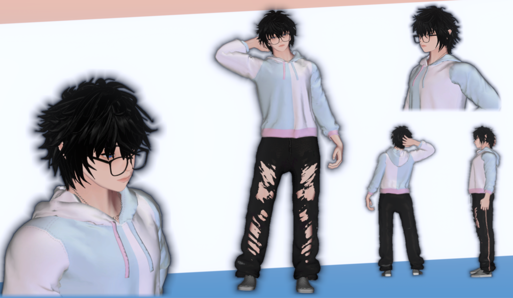 ✟ Texture swaps for Hair, Hoodie, Tee, Pants, Shoes, Glasses, and Pride flag.